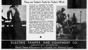 1935年におけるElectric Tamper & Equipment Co.の広告(抜粋)。最下段にアメリカ法人とカナダ法人が連名で記載されており、「無関係な同名企業」ではないことが分かる。