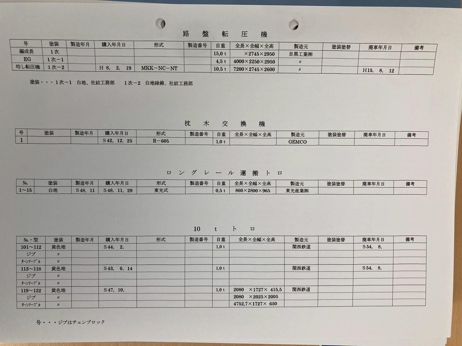 大型保線機械の撮影会と操作・運転体験イベントにて展示資料を撮影