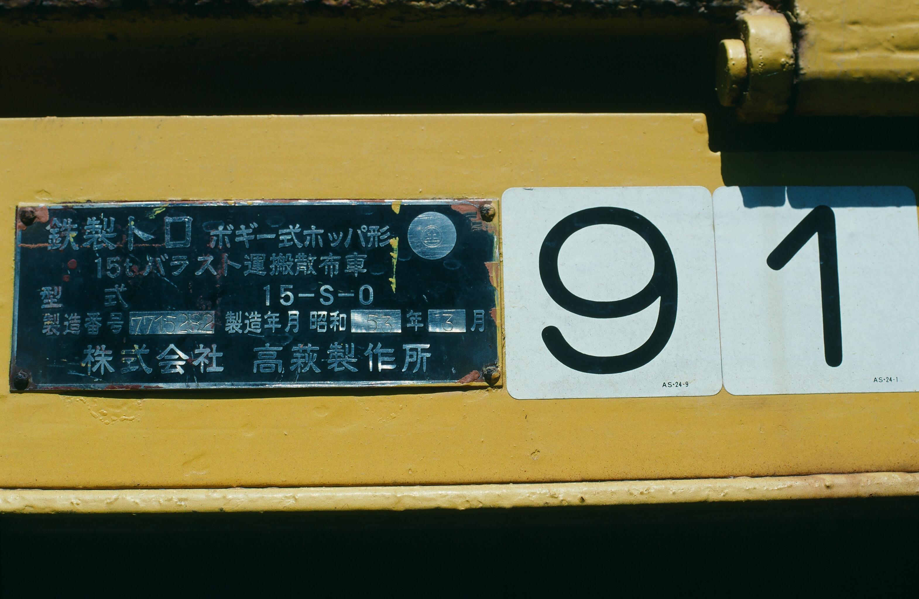 下記の銘板の検印欄にJRCCのマークが打刻されており、元JRCC機である可能性が高い。