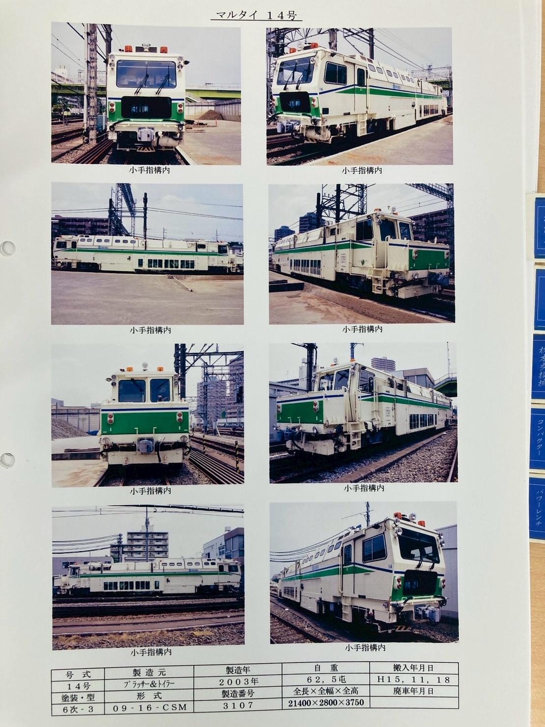 PT_09-16CSM_3107_SEIBU_14 Home › フォーラム › 08_マルチプルタイタンパー › PT_09-16CSM_3107_SEIBU_14 このトピックには3件の返信、4人の参加者があり、最後に只野檸檬により9ヶ月前に更新されました。 4件の投稿を表示中 - 1 - 4件目 (全4件中) 投稿者 投稿 2018年9月10日 6:34 PM #3320 保線鉄のいっくんモデレーター 撮影日:2015/5/30 撮影地:西武鉄道池袋線 西所沢~所沢 *銘盤等は撮影できていないので、後日撮影次第追加及び訂正をいたします。(特甲野郎様ありがとうございます。) この車両は2018/9現在、譲渡に伴い?搬出されてしまった為、西武鉄道に在籍しておりません。 このトピックは保線鉄のいっくんが7年、 5ヶ月前に変更しました。 このトピックは保線鉄のいっくんが7年、 5ヶ月前に変更しました。 2018年9月30日 3:32 PM #3796 特甲野郎モデレーター 2013/12/19 西武新宿線 新所沢駅保守線 西武鉄道㈱ 09-16CSM 製造年 2003 製造番号 3107 この返信は7年、 5ヶ月前に特甲野郎が編集しました。 この返信は7年、 5ヶ月前に保線鉄のいっくんが編集しました。 2021年3月6日 4:37 PM #13604 まさ405モデレーター 2016.6.5 西武・電車フェスタ 2016 in 武蔵丘車両検修場 2025年6月15日 1:44 AM #42902 只野檸檬モデレーター ※この登録は形鉄工業様の許可を得て代理登録しています。 2025/4/29 西武鉄道 小手指構内保線専用線 大型保線機械の撮影会と操作・運転体験イベントにて撮影 製造年:2003年 平成15年11月18日搬入 平成30年7月20日廃車 投稿者 投稿 4件の投稿を表示中 - 1 - 4件目 (全4件中) このトピックに返信するにはログインが必要です。 ログイン ユーザー名: パスワード: ログイン状態を保持 Xでログイン ログイン