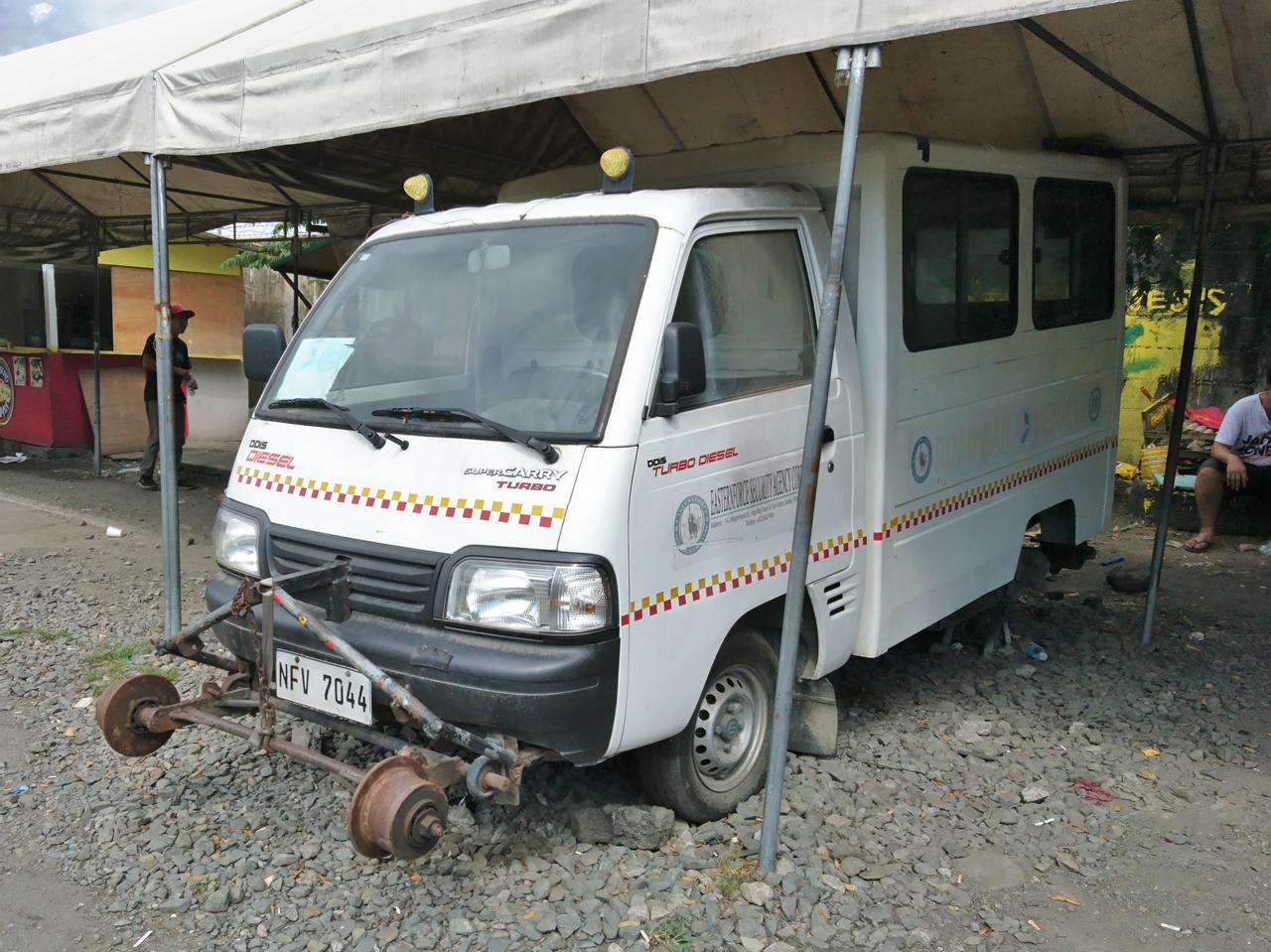 SUZUKI_SUPER CARRY_Easternforce_null_7044 Home › フォーラム › 71_軌陸トラック › SUZUKI_SUPER CARRY_Easternforce_null_7044 このトピックには0件の返信、1人の参加者があり、最後に在羽により3日、 17時間前に更新されました。 1件の投稿を表示中 - 1 - 1件目 (全1件中) 投稿者 投稿 2026年1月10日 12:47 AM #45431 在羽モデレーター 2023年12月5日 フィリピン国鉄(PNR)Bicutan Easternforce Security Agency Corp.という警備会社の所有。フィリピンではトラックシャーシを用いた人員輸送車をよく見かけるが、キャリイなので軌陸トラックへ投稿した。後輪が外されており、長らく使われていない雰囲気であった。 投稿者 投稿 1件の投稿を表示中 - 1 - 1件目 (全1件中) このトピックに返信するにはログインが必要です。 ログイン ユーザー名: パスワード: ログイン状態を保持 twitterでログイン ログイン